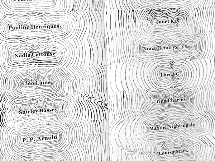 Scat:Sound and Collaboration is an exhibition by Sonia Boyce which explores the significance of sound in art. Presented by Iniva across all the public spaces of Rivington Place, Scat brings together two immersive video works for the first time along with artefacts from the Devotional Collection, Boyce’s archive of CDs cassettes, vinyl records and other ephemera.