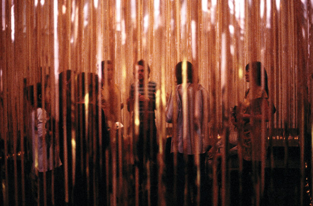 Mobile Chorus (2006-ongoing) is a 3-minute, 5-part instrumental score, for 5 or more voices, to be performed for variable durations. The score references the earlier audio interludes, Songs I, II, III (2005), which comprise sung instances of the lyric ‘golden’. Mobile Chorus is realised through occasional performances by non-professional singers, according to the instructions below. At Diaspora Pavilion, Mobile Chorus will take place within the artist’s installation, Untitled (Pavilion).