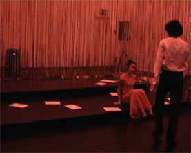 These invitations resulted in an initial hour-long non-stop improvisation by Annie Pui Ling Lok, later followed by an open ‘lesson’ in which ‘instructor’ and various ‘pupils’ attempted to decipher and translate steps from paper to floor. Jenevieve Chang invited in turn a fellow performer, Amadeo Rosenheim, to partner her in an improvisation that played on the gendered dynamic between dancers, teacher and student, and the notion of amateurism.