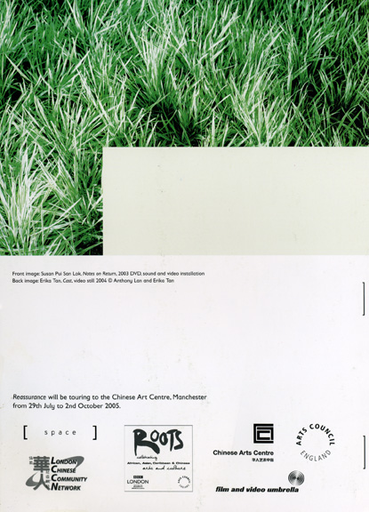 Notes On Return (2003) is a video/sound work commissioned by curator Irene Amore for The Translator’s Notes, Cafe Gallery Projects, London, 2003. A new installation and accompanying video work, After Words, was developed for Reassurance, curated by Yeu Lai Mo for SPACETriangle, London, and Chinese Arts Centre, Manchester, 2005.Notes on Return also featured in the exhibition, Cruel/Loving Bodies, curated by Sasha Su-Ling Welland for Shanghai Duolun MoMA and Beijing 798 Space in 2004, and Hong Kong Arts Centre in 2006.