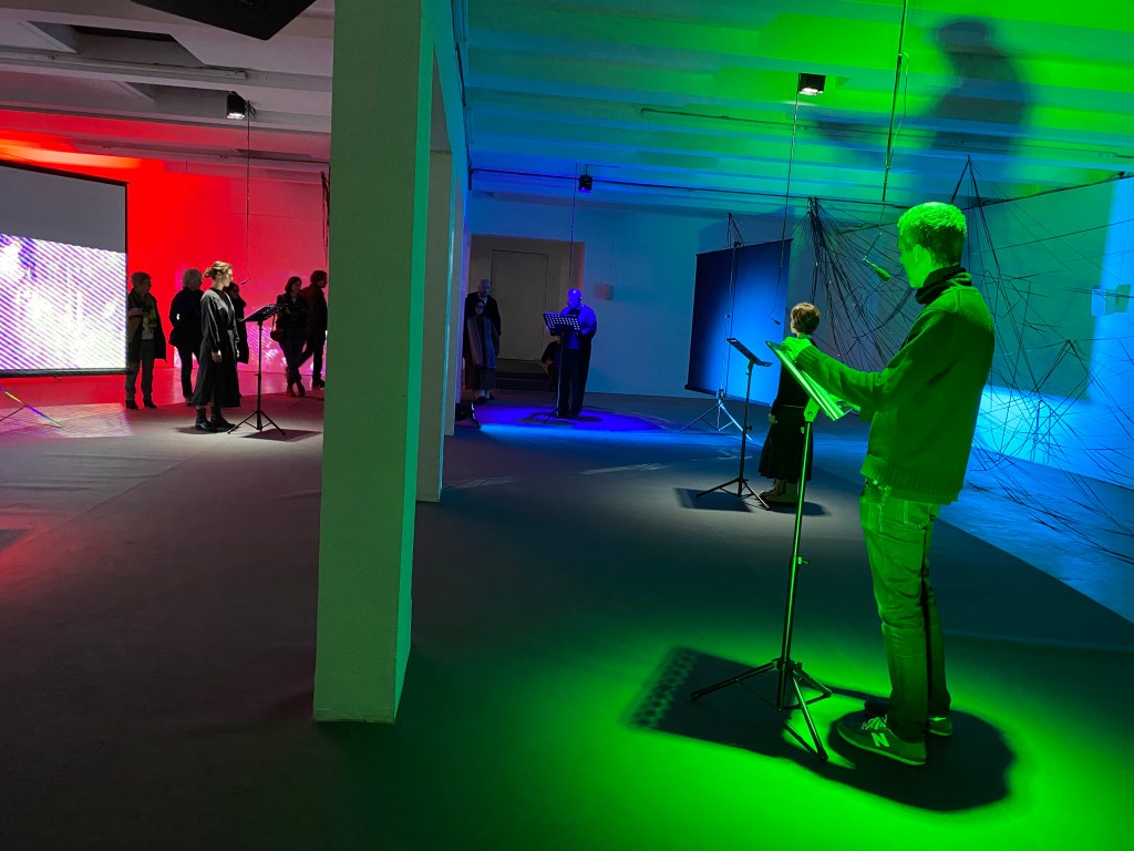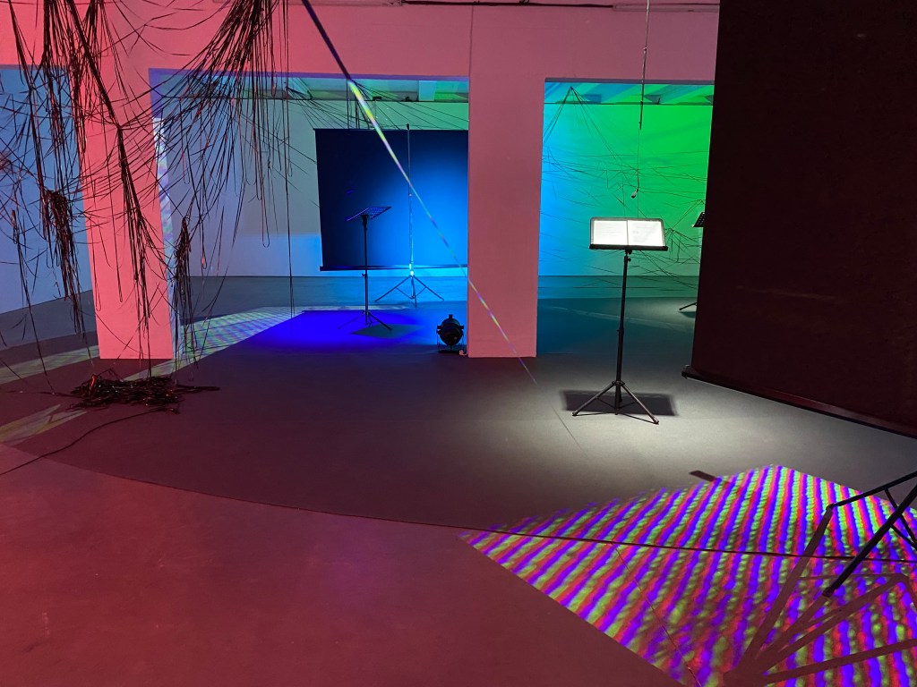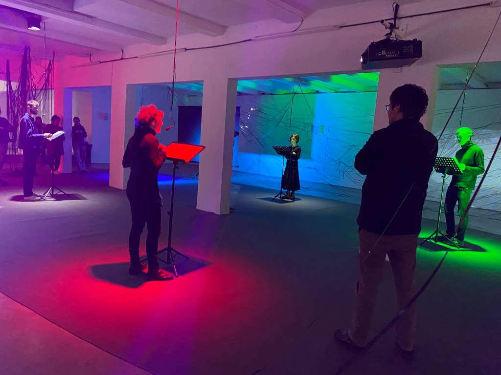Images: susan pui san lok / susan lok pui san, REWIND/REPLAY (2022). Site-specific multichannel installation with sound, video, magnetic tape, mics, stands and live rehearsals at Netwerk Aalst.